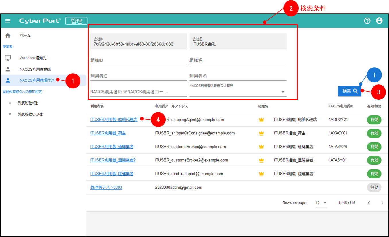 ※ NACCS の利用者情報は、システムの仕様上複数のサイバーポートの利用者に紐づけることができますが、適切なサイバーポートの利用者に紐付けを行うようお願いいたします。
