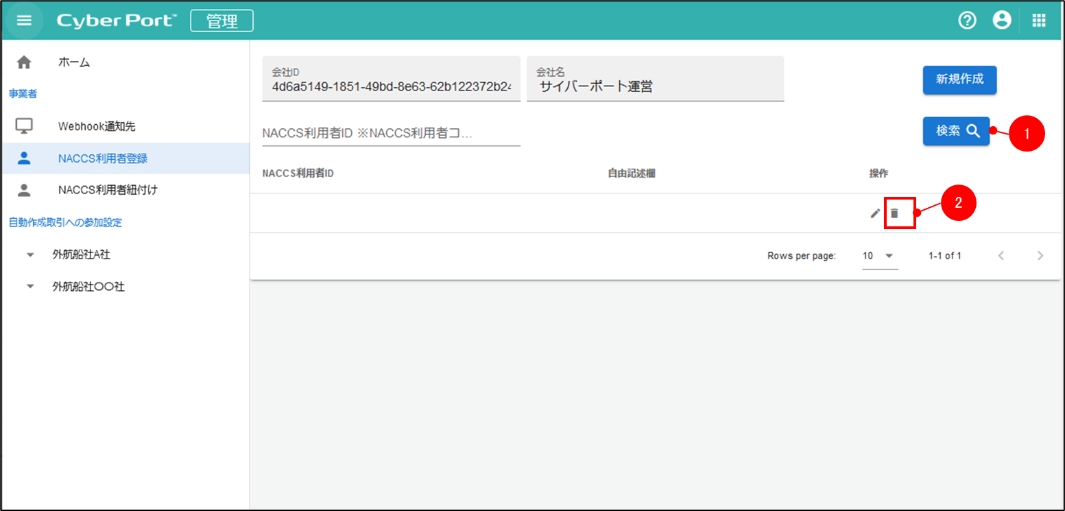 NACCS 利用者情報の削除