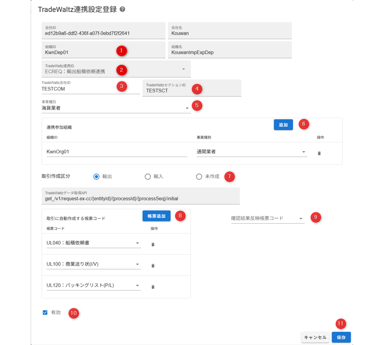 TradeWaltzとの連携時に作成される帳票を設定します。