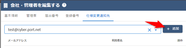 管理者以外にもお知らせメールを受け取るメールアドレスを追加する場合に、この画面に登録します。