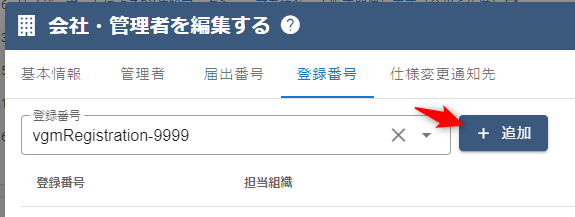 自身の組織と紐づいた登録番号がリストの先頭に表示されます。