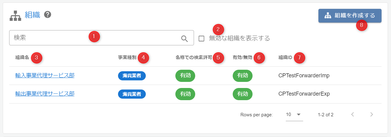 この組織が有効であるか無効であるかを表示します。 ※無効と表示されている場合、組織を利用する事はできません。