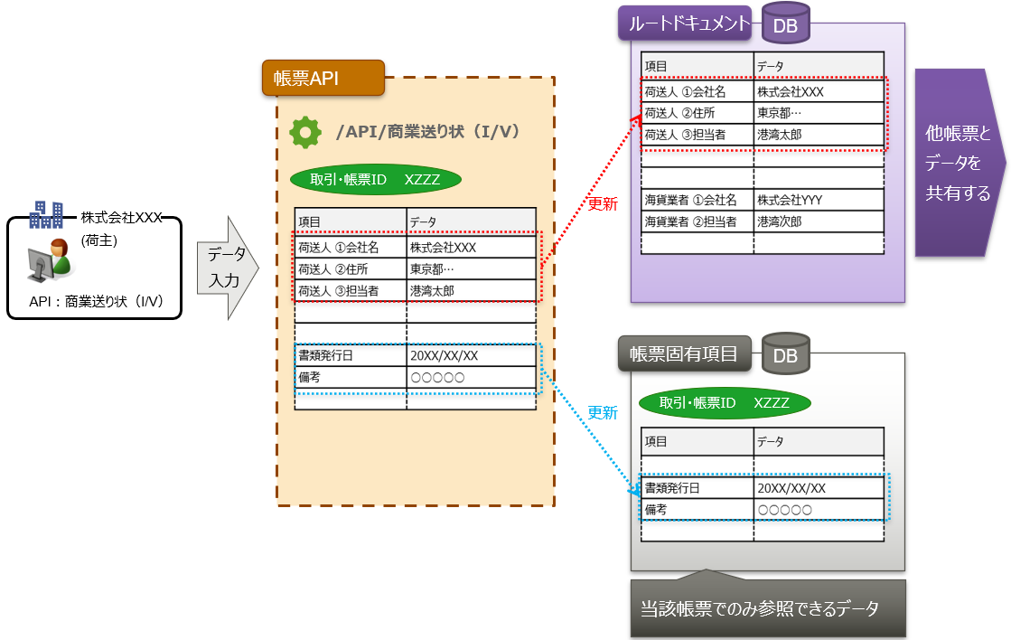 サイバーポートの API/GUI にて帳票データを作成し保存する際、項目により保存先が以下のように分かれます。