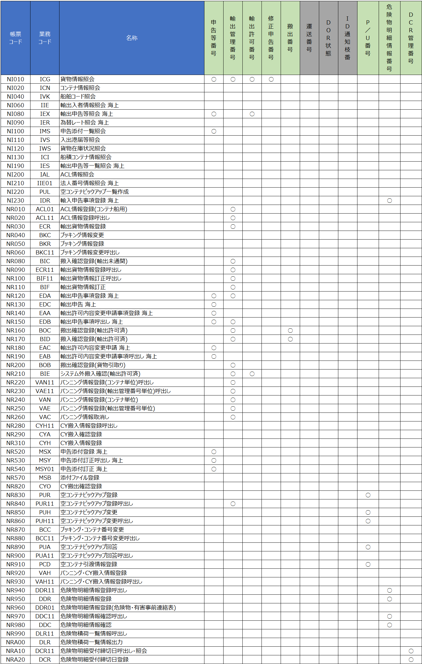 | 404 | IDC | SAS010 | 到着即時申告予定コンテナ情報 | 〇 |