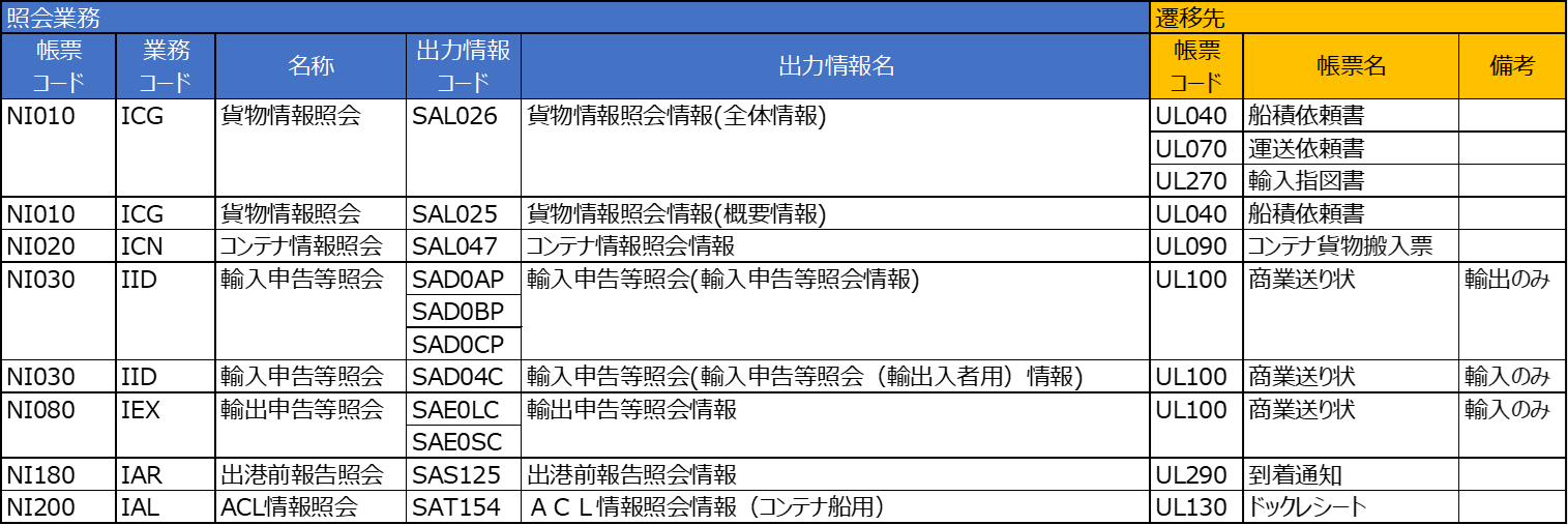 サイバーポートのNACCS連携機能である照会業務から既存帳票への反映機能の対象を記載します。