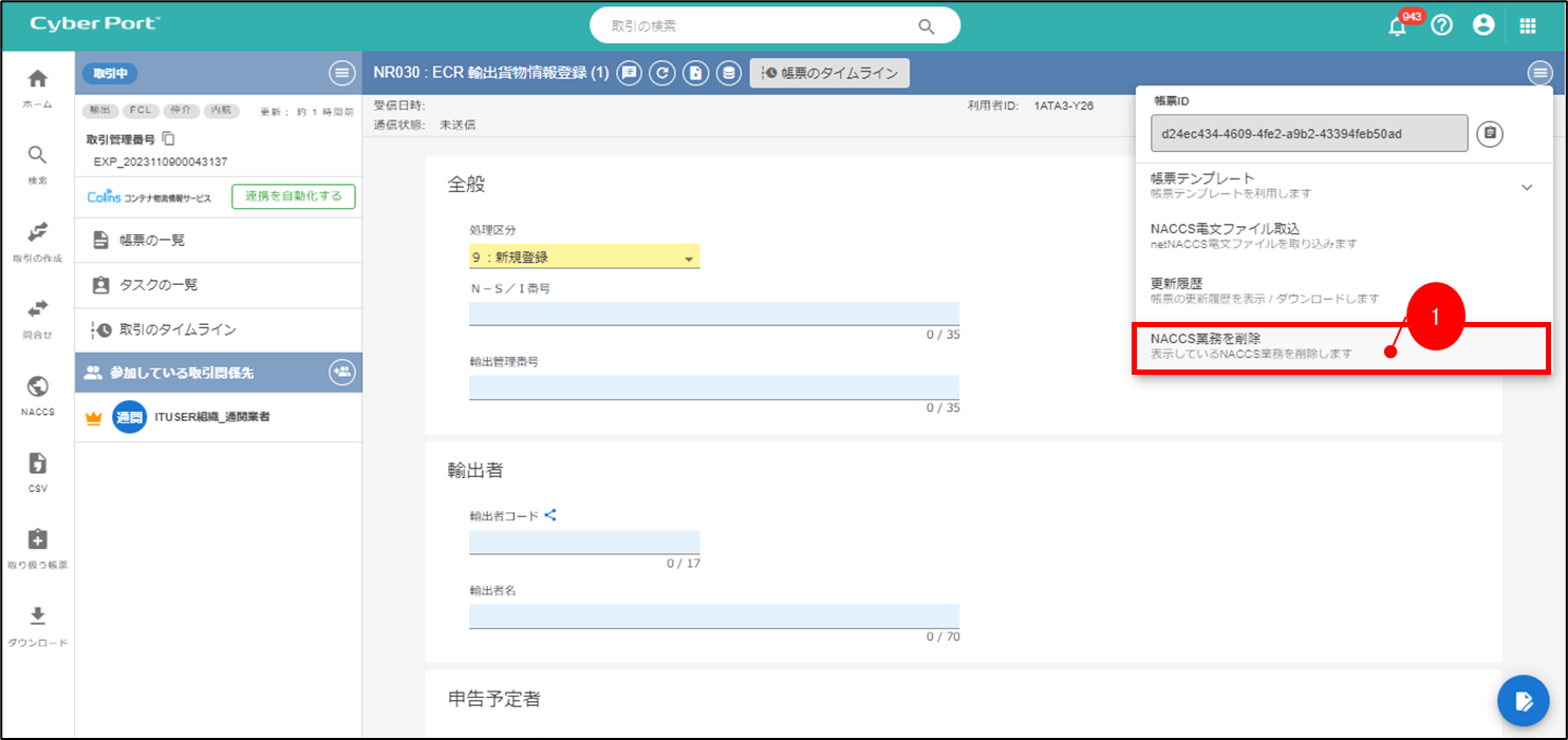 ※ NACCS連携用帳票を削除した場合、当該NACCS連携用帳票は全ての取引参加事業者からも削除されたことになります。