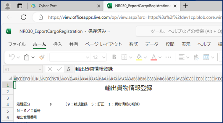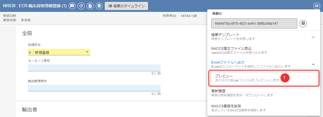 Excelファイル出力の対象業務コードの場合、「NACCS連携用帳票編集画面」 及び 「送信画面」のプレビューからExcelファイルを出力することができます。