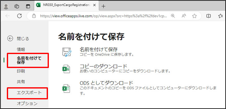 ※プレビュー表示後は、[名前を付けて保存]を選択することで、Excelファイルとしてダウンロードできます。