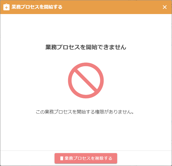 にて、業務プロセスが開始されていることを意味します。 業務プロセス配下のタスクを全て完了(またはキャンセル)させる必要があります。 |