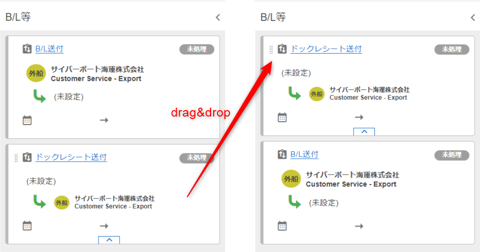 カード左上のマークをドラッグして、業務カテゴリ内での業務プロセスの表示順序を変更します。
