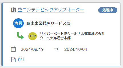 業務テンプレートの役割 に合わせ、「帳票を提出する(組織)」と「帳票を受け取る(組織)」を表示しますが、まだ開始されていないので、どちらかが「未設定」と表示します。