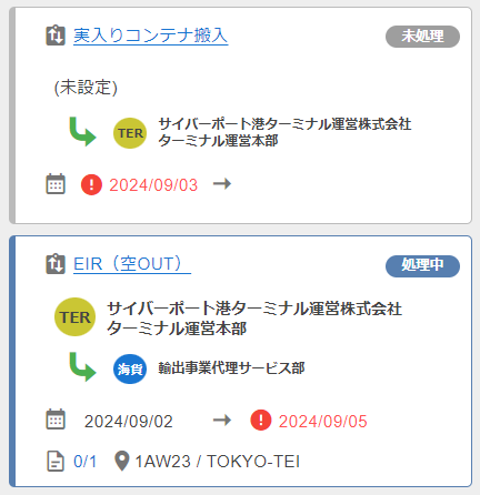 期日が過ぎているのに状態が「未処理」または「処理中」のとき