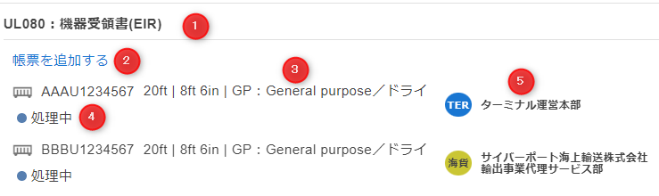 ※ UL080:機器受領書(EIR) を扱う業務プロセスの場合のみ表示されます。