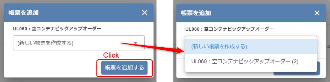クリックすることでダイアログが開き、取り扱う帳票を追加することができます。