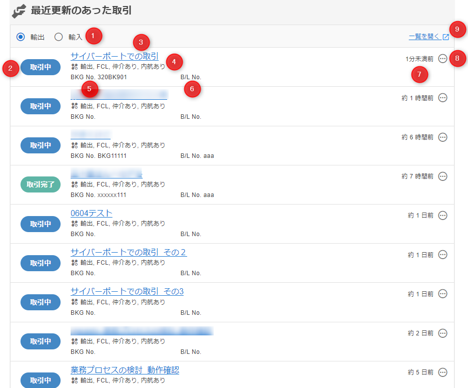 利用者が所属している組織が参加している取引のうち、最近更新された取引を一覧で表示します。