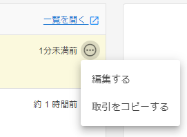 操作メニュー アイコンをクリックすると、以下のメニューを表示します。各操作の詳細については、取引を編集する、取引をコピーする をご参照ください。