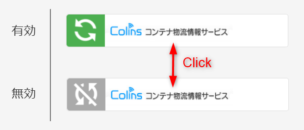 クリックすると、Colins連携データを取引に自動で反映させる設定の 有効 / 無効 を切り替えることができます。