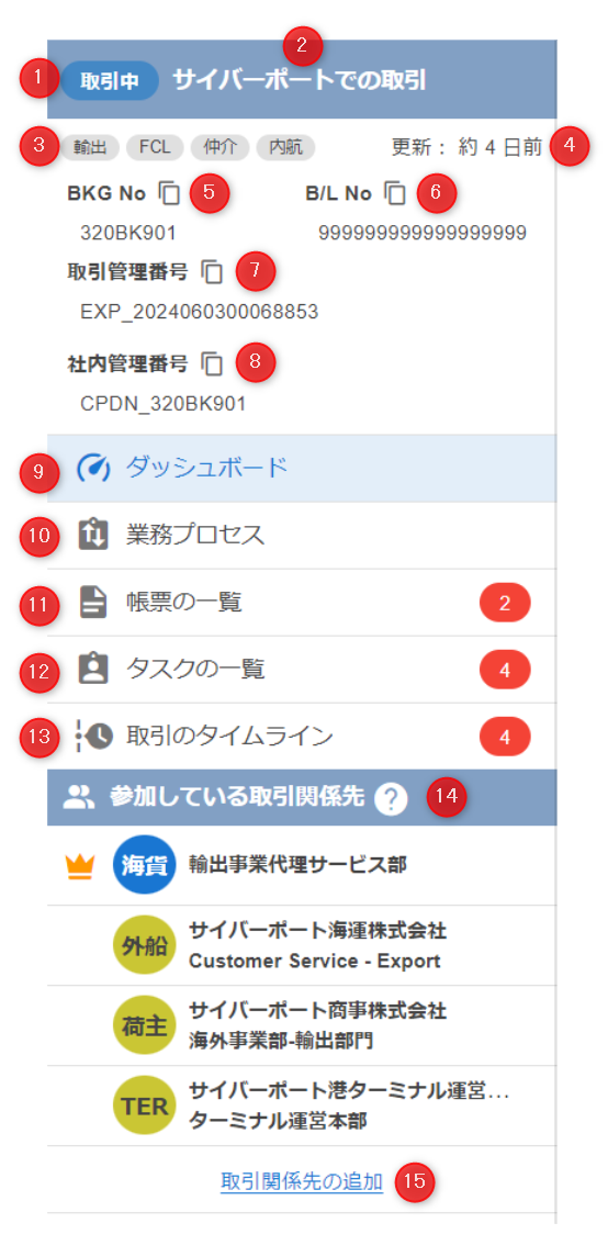 この取引に参加している会社・組織(取引関係先)を表示します。
