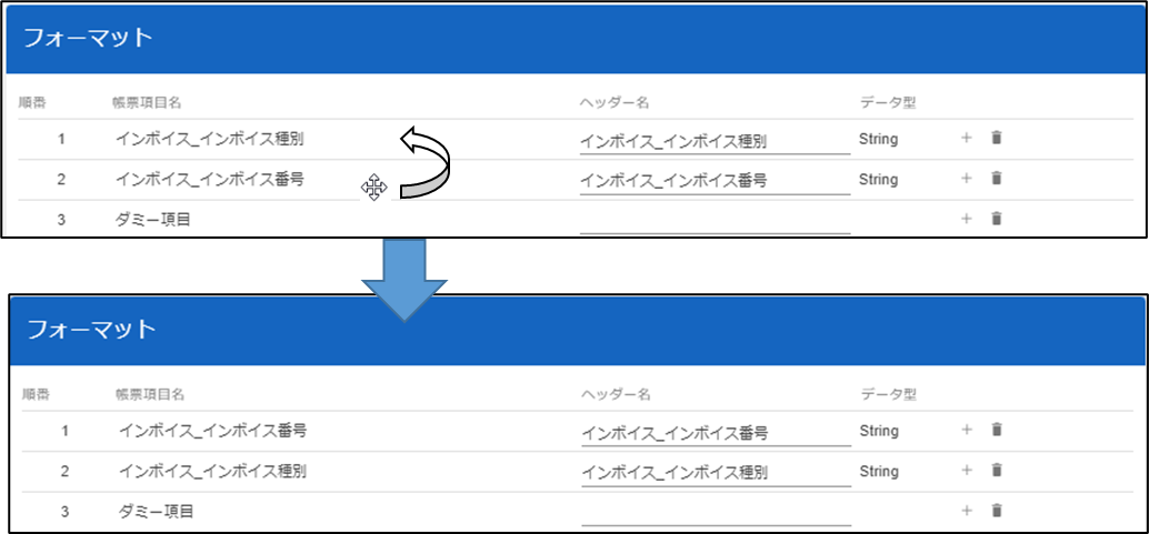 帳票項目の順番は、ドラッグアンドドロップで操作できます。