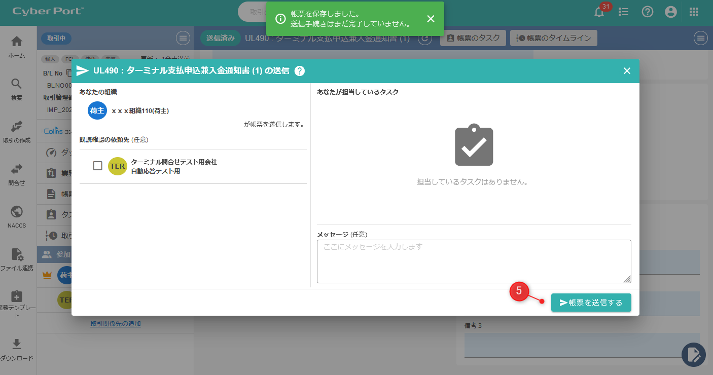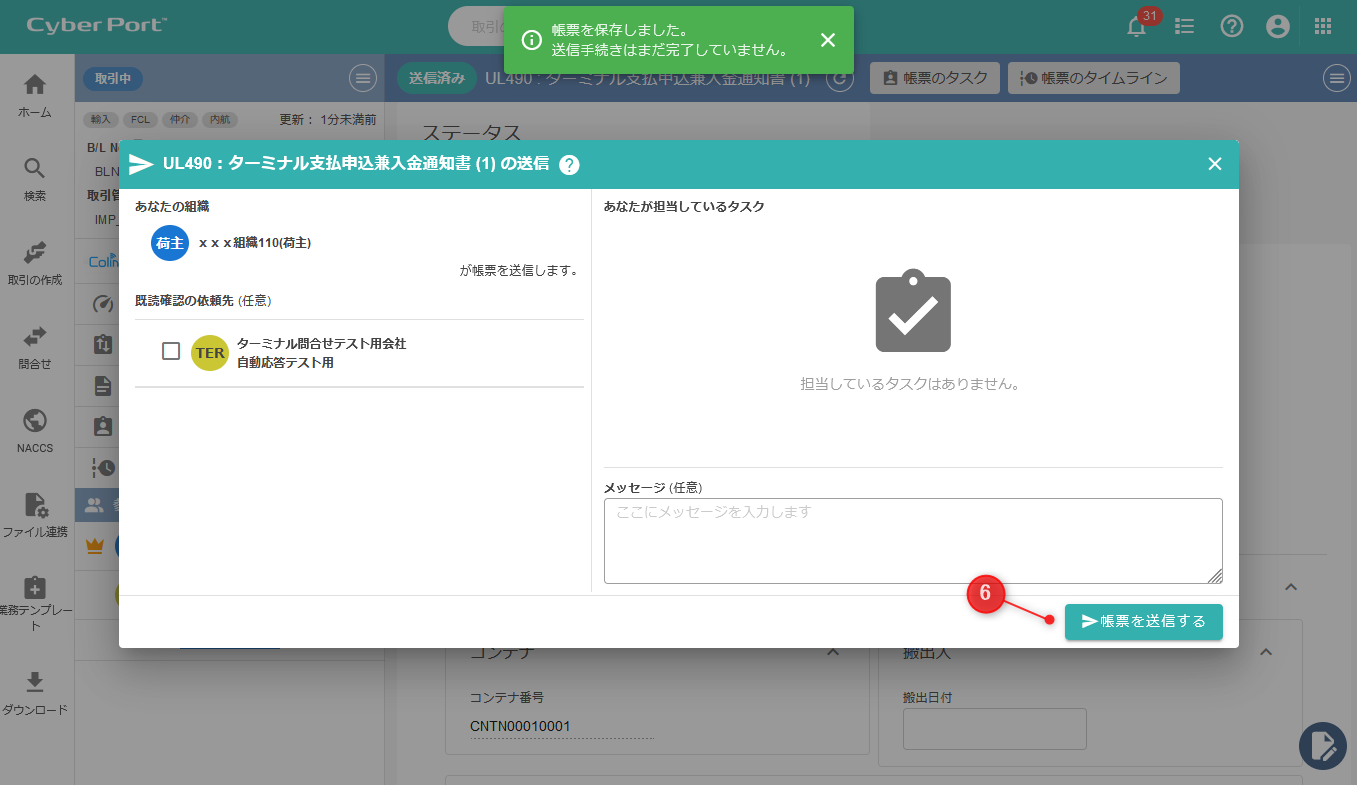 ※送信が完了すると、ターミナルへ入金通知が完了します。