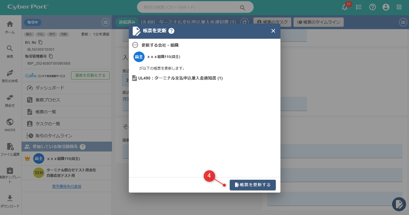 「ターミナル申込兼入金通知書」を利用して、ターミナル問合せ後、支払申込等の業務を行います。