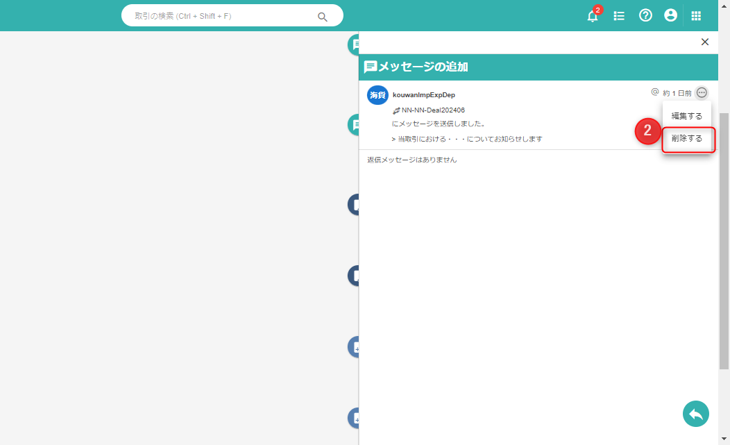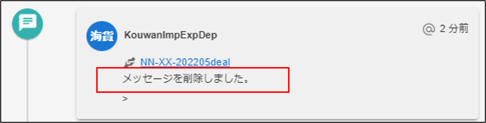確認ダイアログの「削除」ボタンを押下すると、メッセージが削除されます。