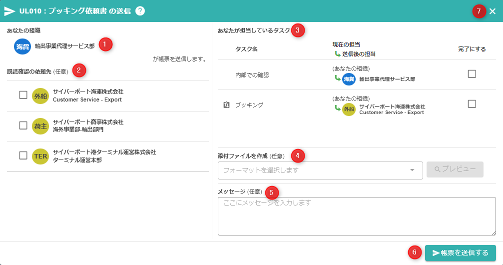 このタスクの「担当する組織」の変更については、帳票の送信によるタスクを担当する組織の変更 をご参照ください。