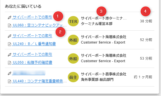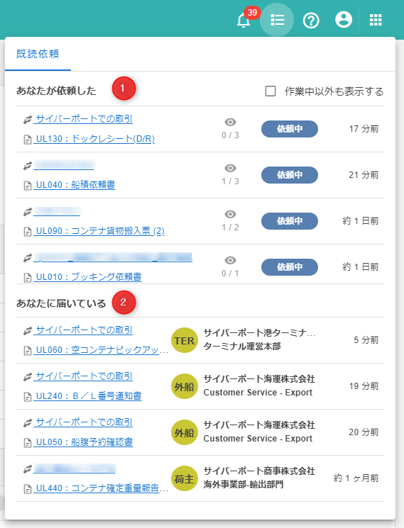 他の事業者から、利用者が所属している会社・組織・事業種別に対して、依頼されている既読確認を表示します。