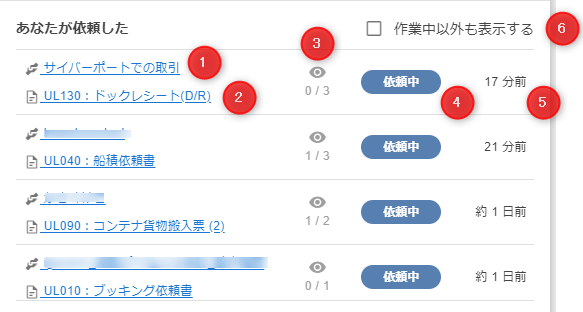 チェックすると、ステータスが「依頼中」以外のものも表示します。