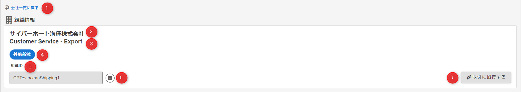 会社の検索にて、一覧に表示された組織をクリックすると、この画面を表示します。
