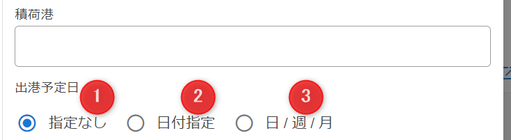 検索したい取引の出港予定日についての検索条件を入力します。