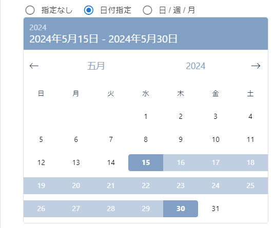 カレンダーから日付を直接指定します。範囲指定(from-to)での指定ができます。
