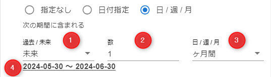 項目 入力内容 過去 / 未来 未来 数 1 日 / 週 / 月 ヶ月間