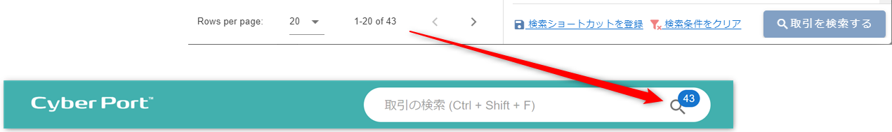 この件数は共通ヘッダ の”取引の検索”フォームの検索アイコンにも表示されます。