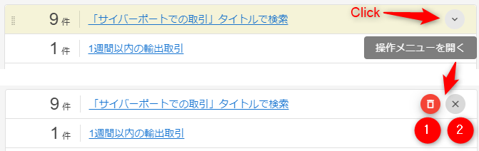 このアイコンをクリックすると、保存されている検索ショートカットを全て表示します。