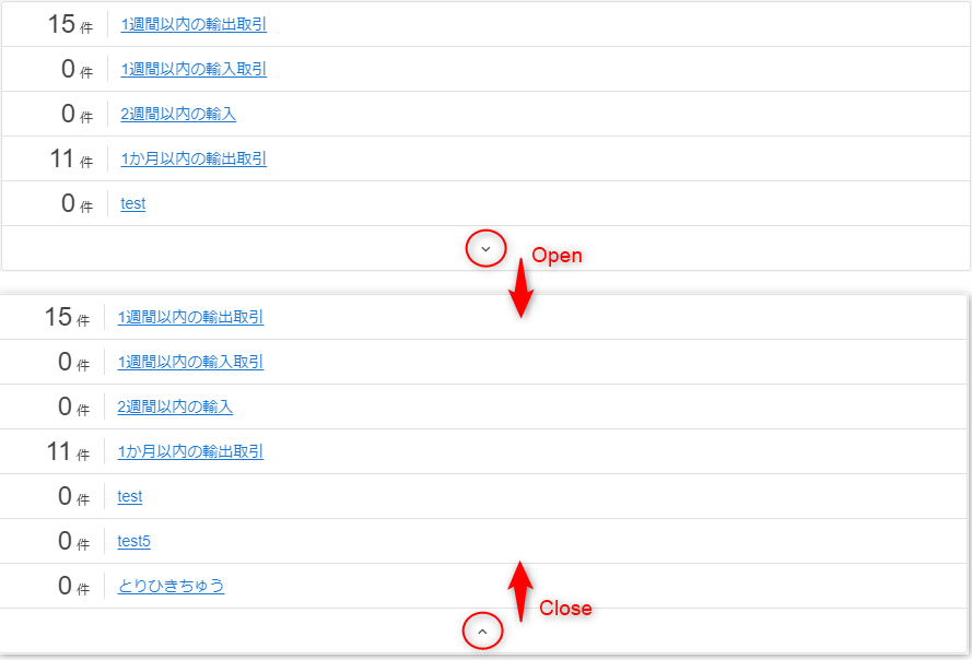 もう一度、クリックすると、デフォルトである最大5件の表示に戻ります。