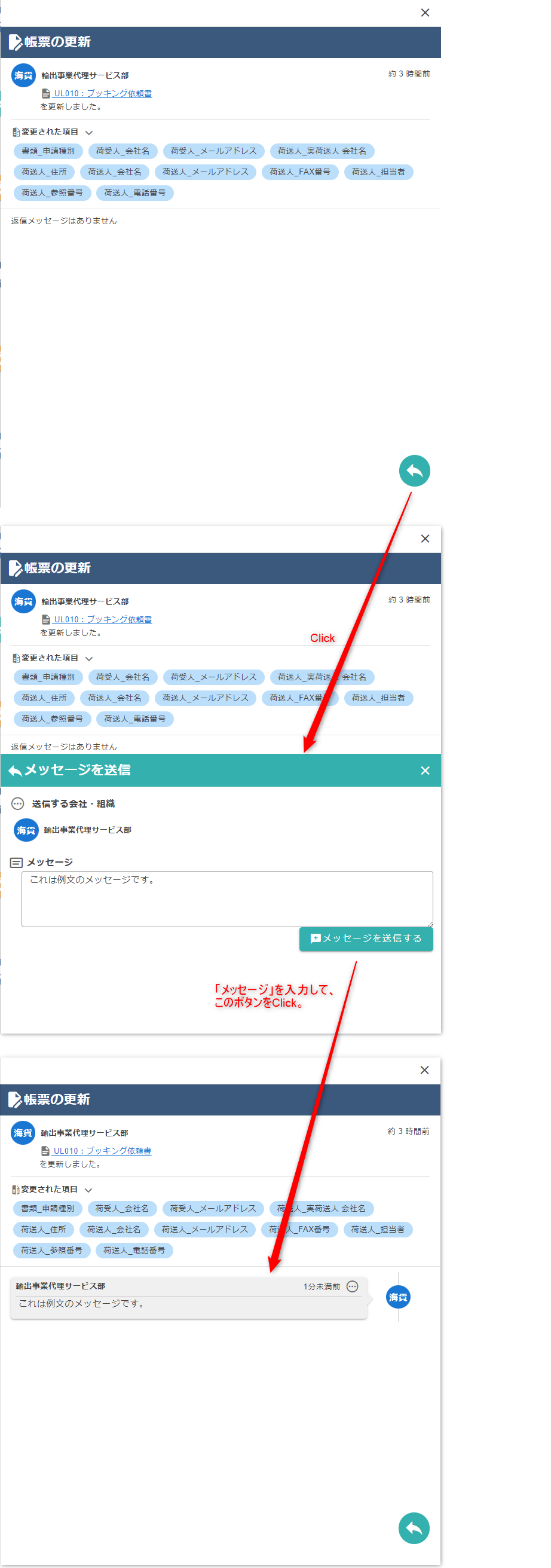 表示している操作に対して、メッセージを送信(返信)することが出来ます。