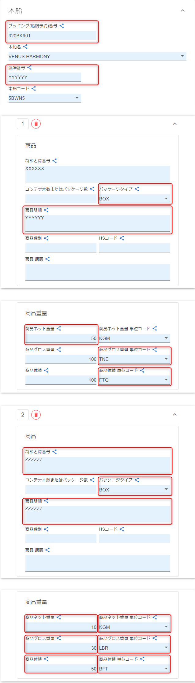 | 変更前(履歴1) | 変更後(履歴2) ※赤枠が変更を行った項目 |